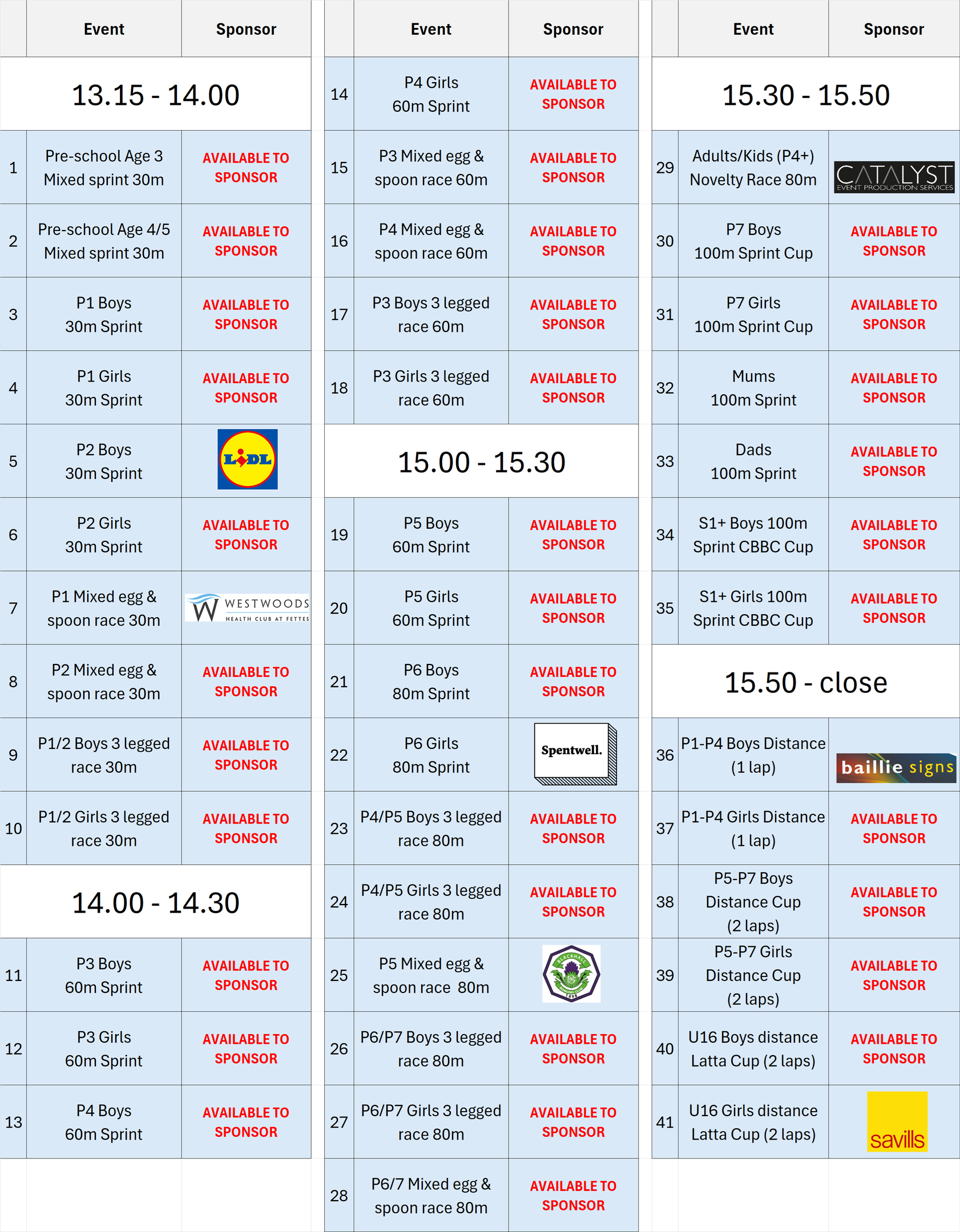We are currently looking for sponsors for the 2026 Sports Day so please get in touch!